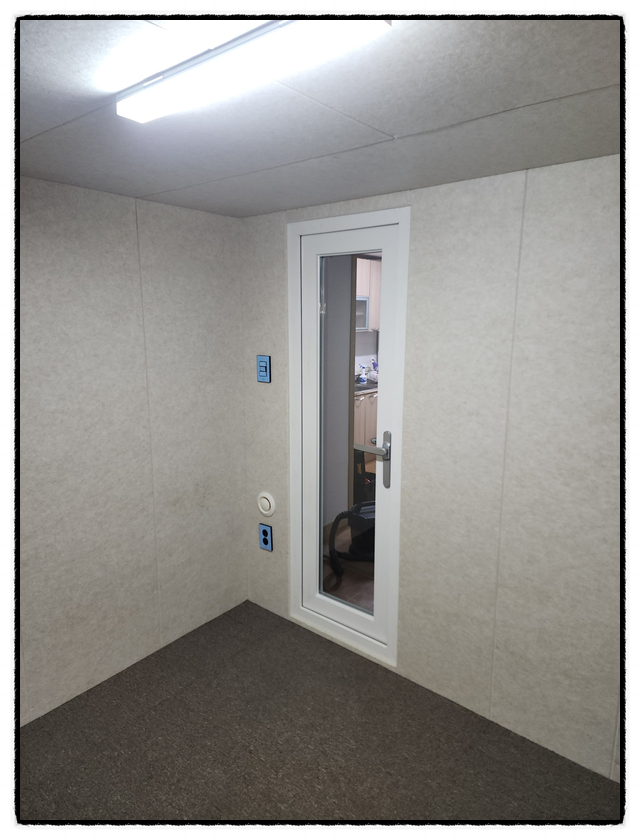 안녕하세요 사운드블럭입니다. 제품명 : 베이직 디럭스 사이즈 : 2400*2300(내부사이즈 2260*2130) 추가옵션 : 레일등, 마감재 베이지 사용용도 : 첼로 설치지역 : 여수