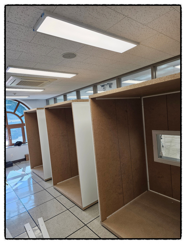 안녕하세요 사운드블럭입니다. 제품명 : 베이직 스탠다드 사이즈 : 1400*1400 (내부사이즈 1260*1230) 추가옵션 : 시창 사용용도 : 통역부스 설치지역 : 계명대학교