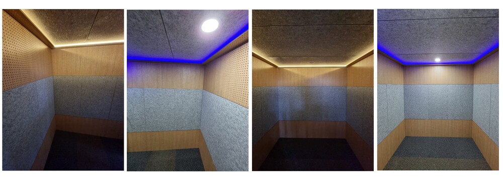 *간접등은 방음부스의 방음문쪽 면을 제외하고 ㄷ자 모양으로 시공 됩니다. (전등색 선택가능)